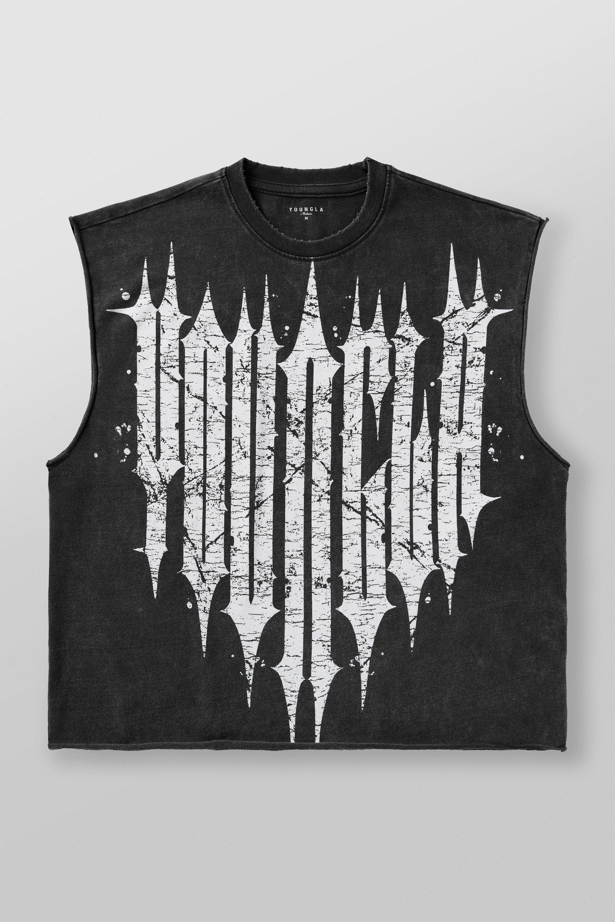 DESIGN: Elevate your streetwear game with the YoungLA Revenge Cut-Off Tank Top, boasting a bold distressed-effect logo print. This tank top embodies a lifestyle streetwear vibe, perfect for making a statement on the go. Crafted for comfort and mobility, its raw cut-off edges add a rugged, edgy look.
