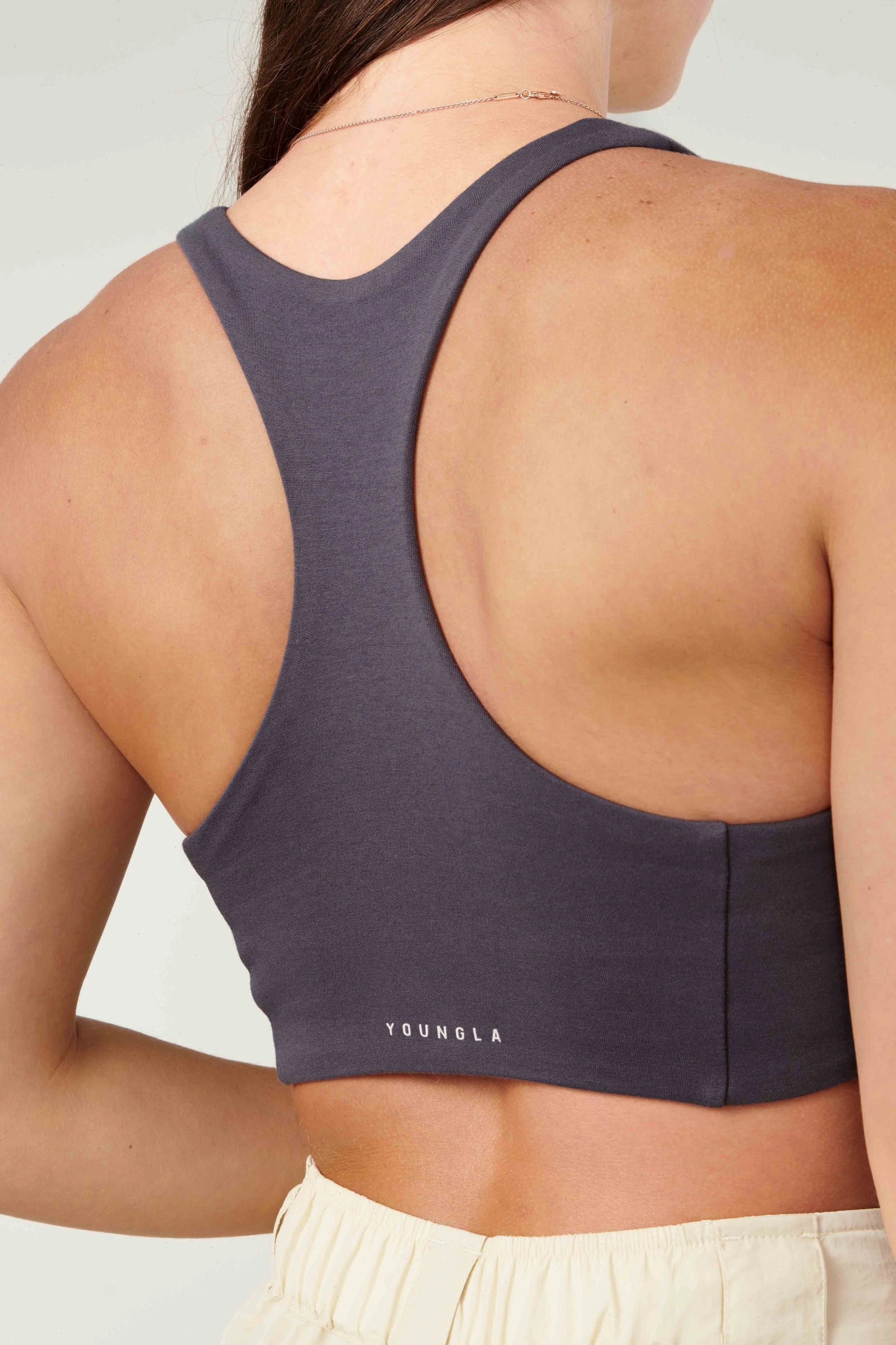 DESIGN: Embrace a sleek, form-fitting look that enhances your curves. Perfect for workouts or casual wear, it's the racerback design that offers style and freedom of movement. Stay cool and stylish in versatile colors with our OG Racerback Tank. The 2.0 version has spaced out YoungLA logo in the back for a simplistic detail.